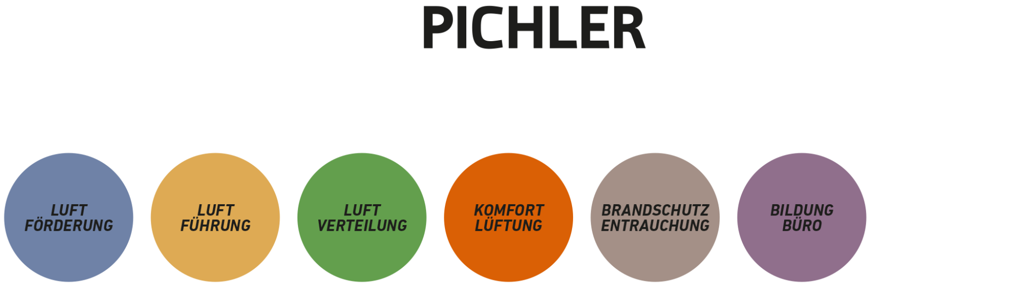 Das Pichler-Komplettprogramm: Mit unserem umfangreichen Produktsortiment decken wir alle wichtigen Gebiete der Lüftungstechnik professionell ab. Dabei gliedern wir unser Pichler-Komplettprogramm in sechs Produktbereiche und das Pichler-Komfort-Service:
